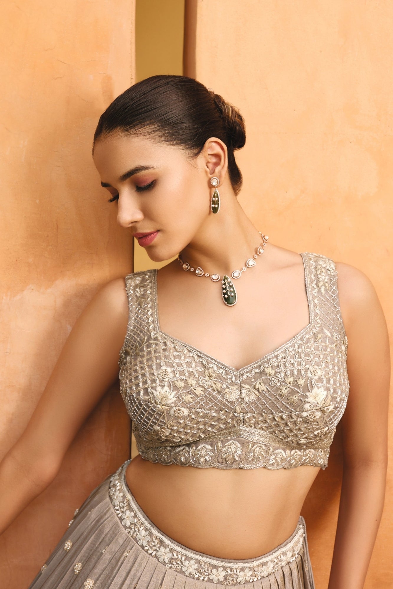 Grey Hand Embellished Lehenga