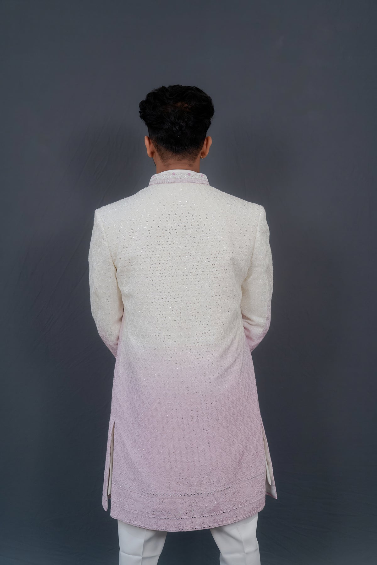 Ivory and Pink Gradient Embroidered Sherwani - M