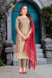 Make a bold and refined statement with this stunning brown straight-cut pant dress, beautifully paired with a vibrant red dupatta. The intricate embroidery and luxurious fabric make it a timeless choice for festive celebrations, weddings, and traditional events.