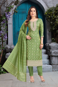 Green Straight-Cut Pant Dress with Intricate Embroidery and Striped Dupatta