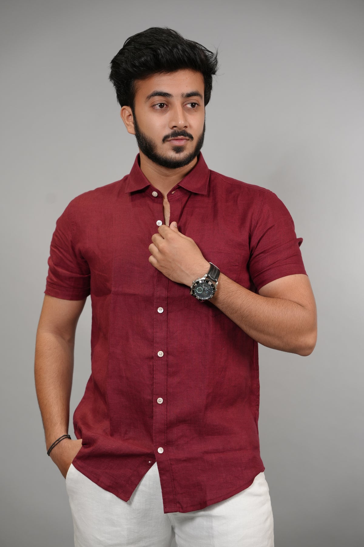 Maroon Half Sleeve Linen Shirt - M / Maroon